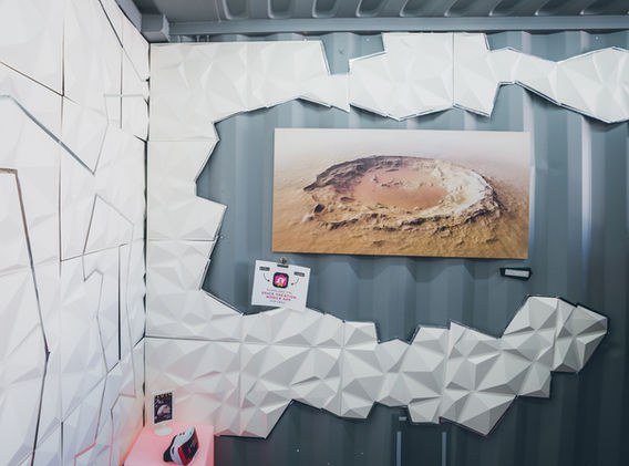 "Envision your dream vacation to outer space with the Intergalactic Travel Bureau. At this enchanting pop-up, we provide you with one-on-one consultations with experts in the fields of space astronomy and hospitality. Consider the incredible possibilities of space tourism in the fun and whimsical setting of a retro futuristic travel office."