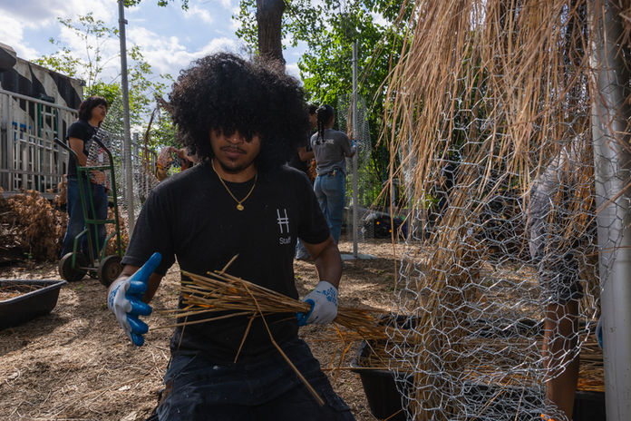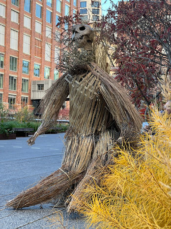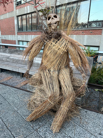 Four scarecrows crafted of native grasses grown on the high line were exhibited on the High Line October 26-oct 31 2024. They were created in collaboration with the High Line Horticulture Department and the High Line Teen Staff who helped weave the scarecrows in two workshops. After deinstallation the grasses were composted, and the wire armature was recycled.